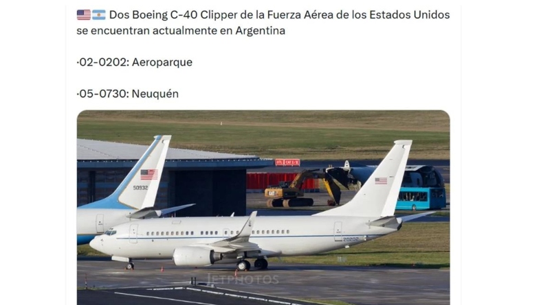 La novedad fue dada a conocer por la cuenta especializada de X Vuelos y Spotters, que informó que «Dos Boeing C-40 Clipper de la Fuerza Aérea de los Estados Unidos se encuentran actualmente en Argentina». Uno aterrizó en Aeroparque y otro en Neuquén.